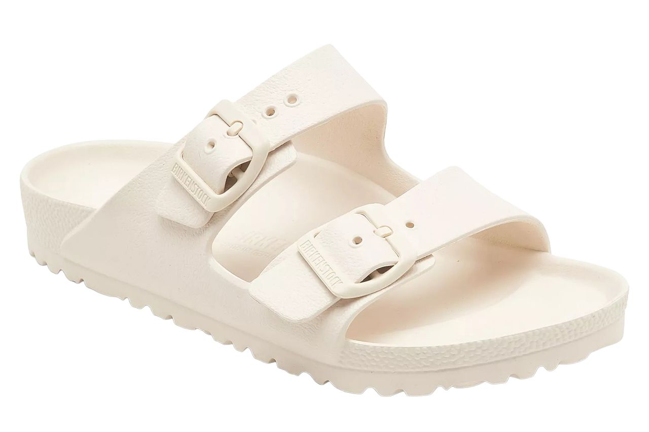 Birkenstock Arizona Essentials EVA Sandals are a reliable choice for any trip. At $50, these sandals are lightweight, water-resistant, and comfortable enough for long days on your feet. Their monochromatic design gives them a polished edge, making them suitable for both beach days and casual dinners.
