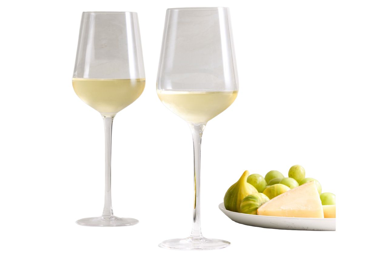 Quince offers a set of four mouth-blown white wine glasses for $90. Made from lead-free crystal, they are dishwasher-safe and add a touch of elegance to any table setting. These glasses are a great option for entertaining guests.