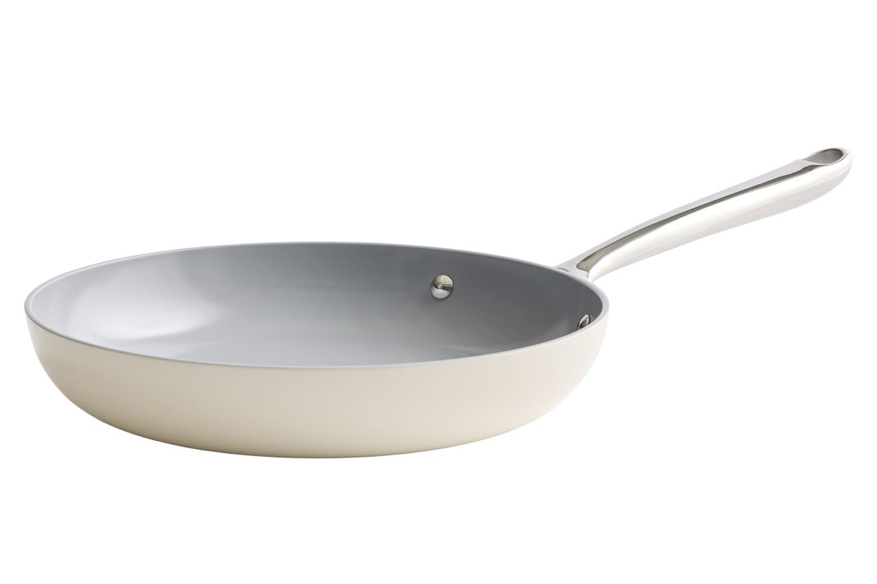 This 10-inch frying pan, available for $50, is a cost-effective alternative to premium brands like Caraway. It features a ceramic nonstick coating that is free from Teflon and PFOA. The pan is oven-safe up to 500°F, making it versatile for various cooking methods.