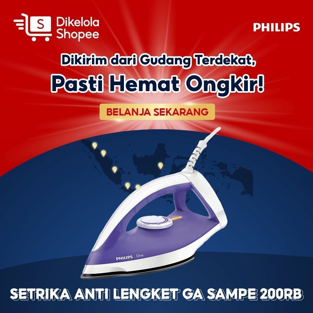 Check out the Philips Diva GC122/37 Purple Dry Iron – Affordable promo iron, Non-Stick Soleplate, Durable for Rp213,000. Get it on Shopee now !